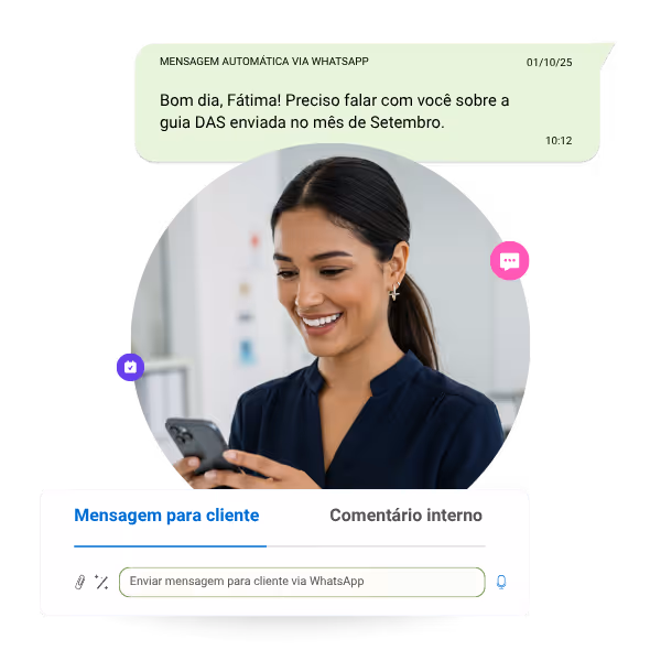 Nos escritórios contábeis, o cenário é o mesmo: o cliente manda mensagem, envia comprovante, foto de nota, pergunta sobre impostos, tudo pelo WhatsApp.